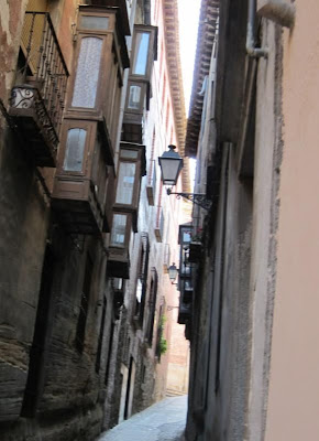 拜日十點多早晨的托雷多,是寧靜的!導游說這是因為人們因周末的狂歡(Fiesta)而還在沉睡著~ 就知道西班牙人是多麼能及時行樂啦!走在它古城區,感覺到一絲歷史留下來的古老味。陳舊的建筑與寧靜的小巷,很難想象自己如何能長期生活在如此的環境中!然而更難想象的是:這麼窄的小巷子,怎麼能讓行人與車輛同時並行哪?光美國大胖子,就可以把大半個巷子給佔去!哦~ 不是我家胖子啦!他大概可佔去1/3吧!![]()
