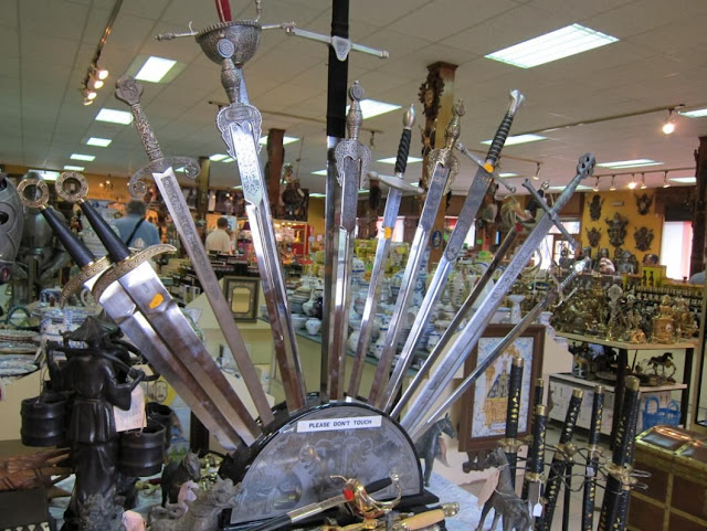 快到達馬德裡經過的一個停歇站(就是導游賺點小費的地方)托雷多的特色手工藝品享有盛名,其中又以手工刀劍聞名