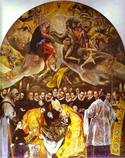 以上,都是旅游書裡的客套話啦!以導游的說法,當初誰捐最多錢給教會,誰的像就會出現在此畫裡面!可見大手筆就是那位奧爾加斯伯爵!再來就是他在人間遺體旁的一串葡萄!那麼我們有看得出什麼所以然嗎?啊!沒有也!(就承認自己沒啥藝術細胞吧!
