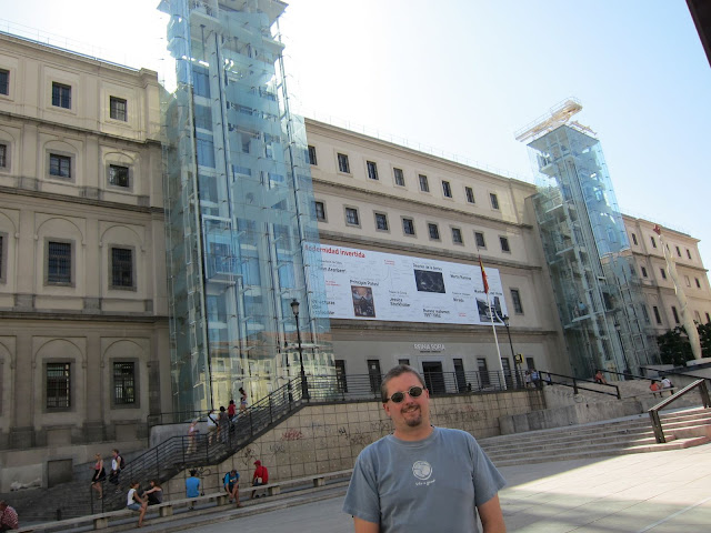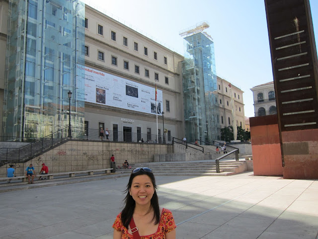 一早跑去排隊買球票,又到市區的另一頭參觀了球場,吃了一頓豐盛的午餐,說真的,倆人到這時其實都有點累了!但秉成著游客精神,我們還是來到了蘇菲亞王妃藝術中心,為的是親眼看這裡的鎮館之寶,現代藝術代表大師畢卡索所畫的格爾尼卡(Guernica)。當然除了畢卡索之外,這裡也有收藏了許多西班牙現代藝術大師的畫作,加上跟那種嚴肅的宗教宮廷人物畫作比較,胖子男友跟我都比較偏向現代藝術,也因此我們對這裡的參觀也比較期待 (雖然倆人都累得快昏啦!)